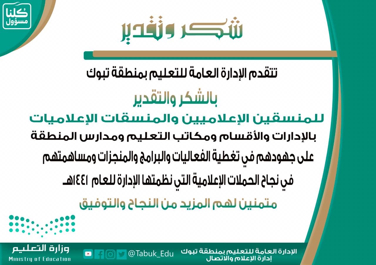 إدارة تعليم تبوك On Twitter شكر وتقدير تعليم تبوك