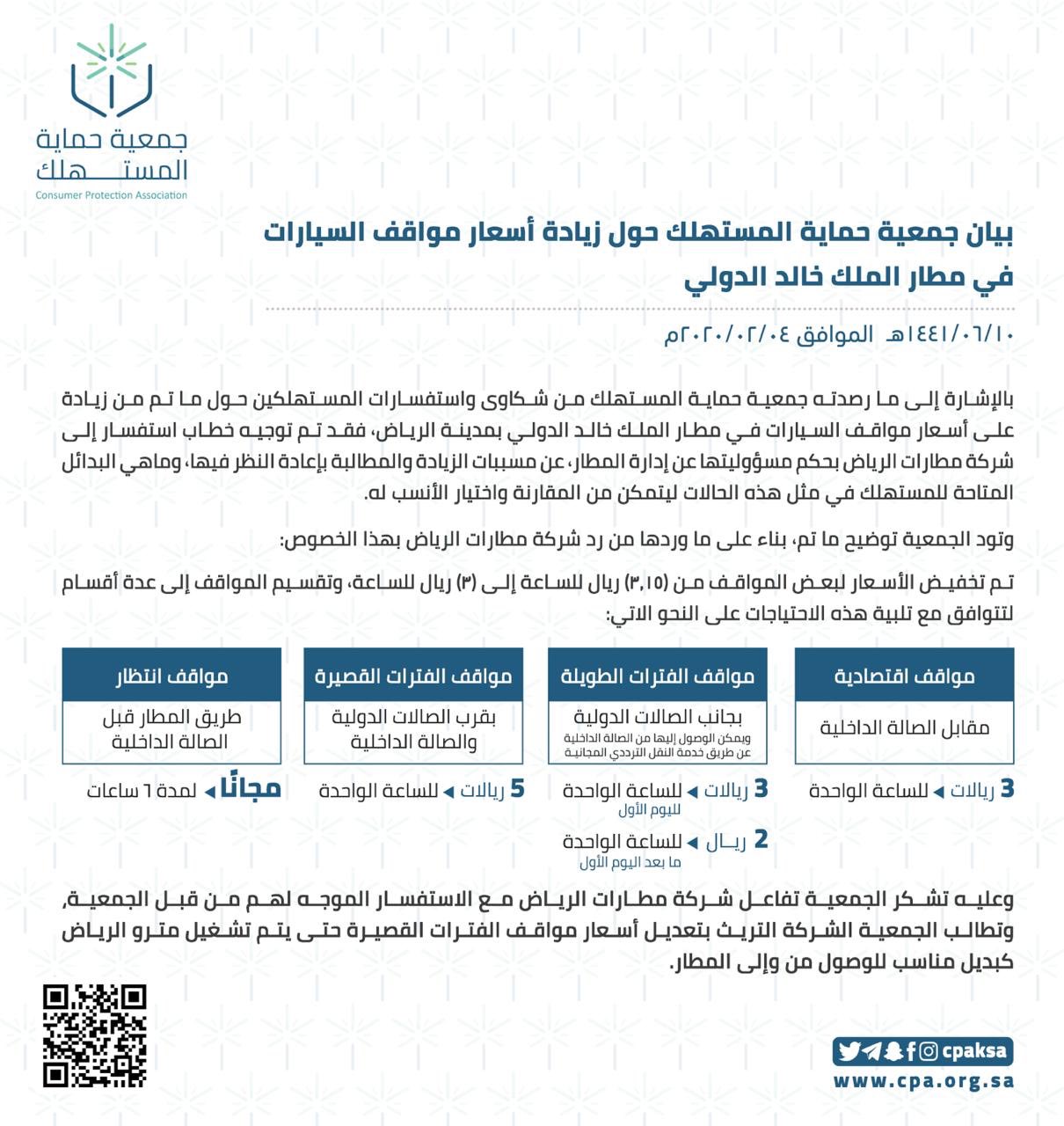 جمعية حماية المستهلك على تويتر بيان جمعية حماية المستهلك حول زيادة أسعار مواقف السيارات في مطار الملك خالد الدولي تعرف