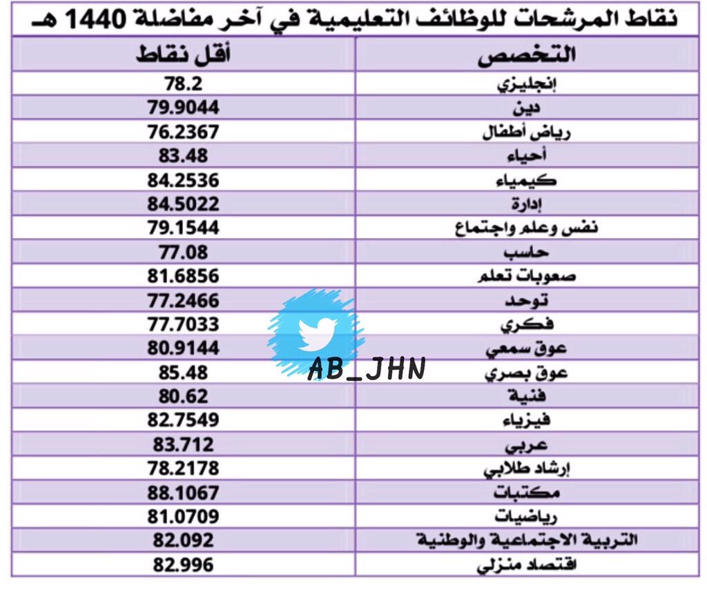 Uzivatel أ عبدالرحمن الغامدي Na Twitteru اقل نقاط المرشحات للوظائف التعليمية 1439 4