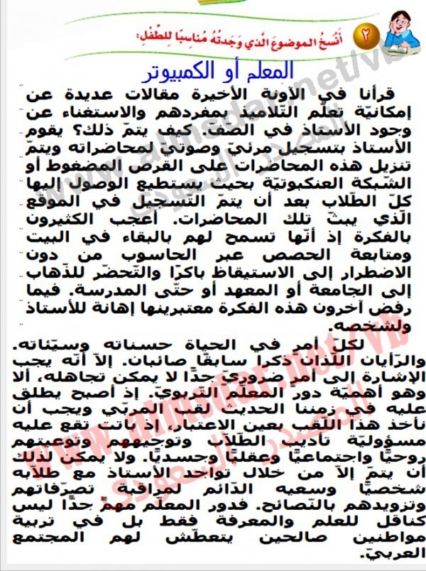 ابحث في احدى مجلات الاطفال عن موضوع يناسب الطفل سؤال وجواب