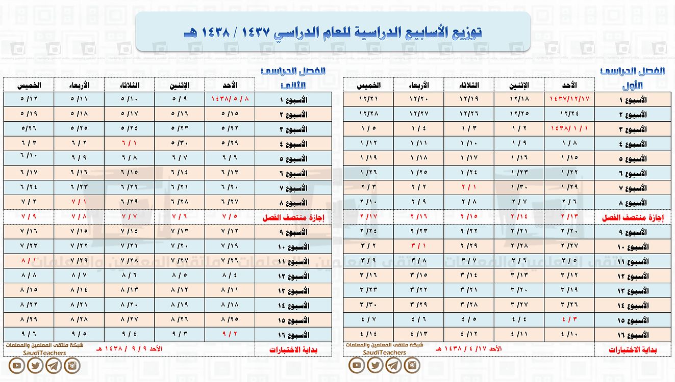منصة ملتقى المعلمين والمعلمات On Twitter التقويم الدراسي وتوزيع الأسابيع للفصلين للعام الدراسي 1437 1438هـ صورة Word Pdf هنا Https T Co Lt51emyrdt