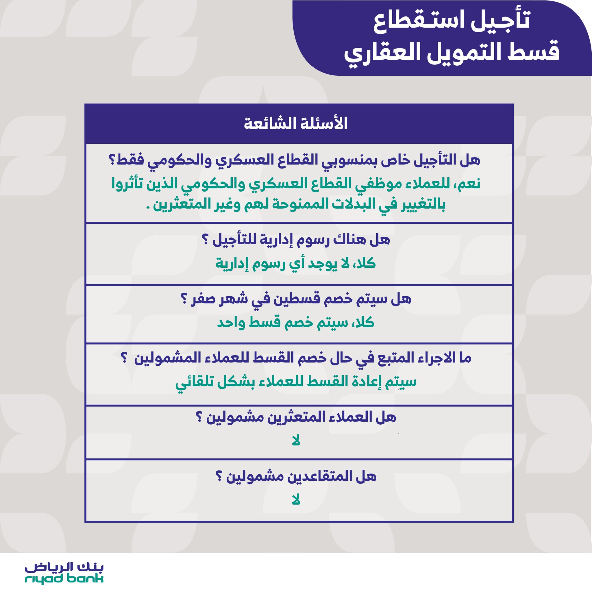 بنك الرياض On Twitter الأسئلة الشائعة بخصوص تأجيل قسط التمويل العقاري لشهر محر م لموظفي القطاع الحكومي العسكري والمدني