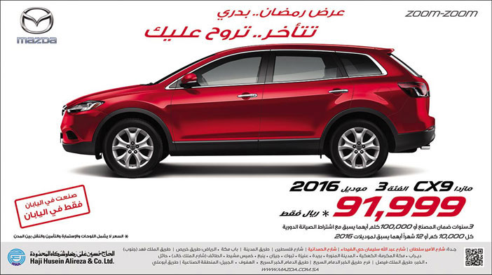 عروض الحاج حسين علي رضا على سيارات مازدا 2016 الجديدة