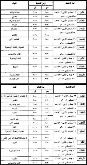 جدول الثانوية العامة للأكاديميات والمدارس السعودية بالخارج