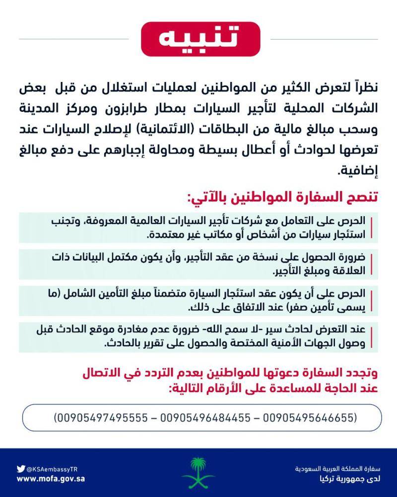 السفارة السعودية في تركيا تحذر المواطنين السعوديين من عمليات نصب