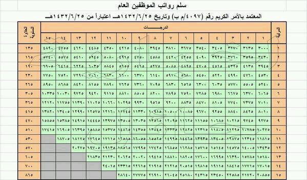 سلم الرواتب الجديد سيعمل به اعتبارا من 25 6 1432هــ مع الشرح المفصل شباب نجمة الجنوب