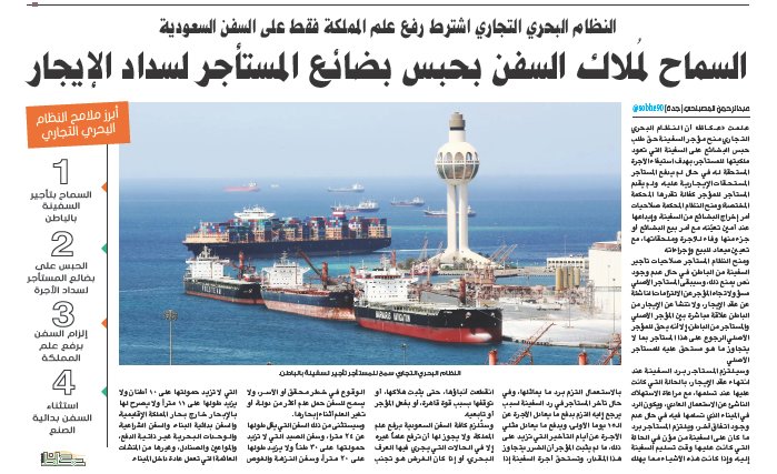O Xrhsths صحيفة عكاظ Sto Twitter النظام البحري التجاري اشترط رفع علم المملكة فقط على السفن السعودية السماح لم لاك السفن بحبس بضائع المستأجر لسداد الإيجار Https T Co Flr5vzom7w عكاظ Okaz Online Https T Co 5jcx9wcod9