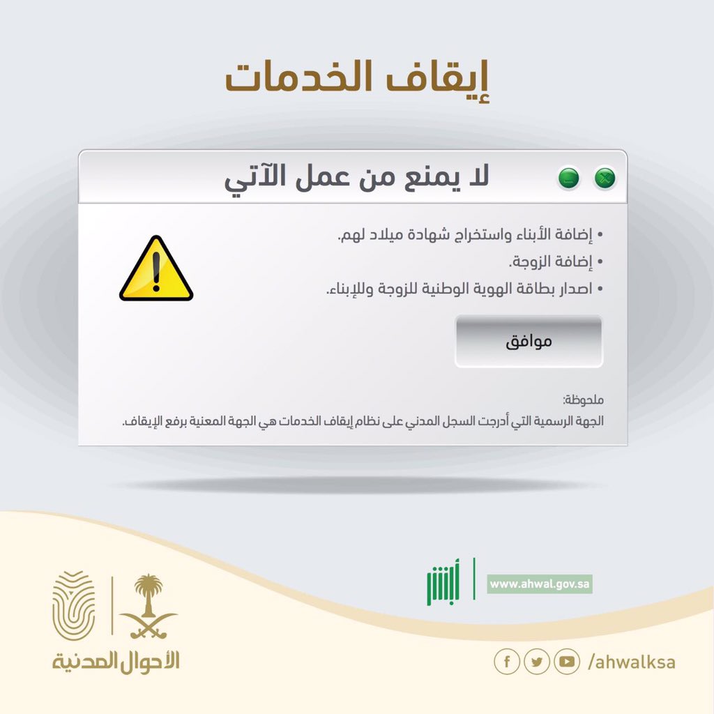 الأحوال المدنية No Twitter إيقاف الخدمات لا يمنعك من عمل الآتي