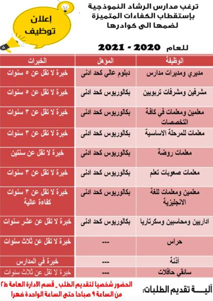 وأوضحت الإدارة أن الأولوية لمن ألغيت عقودهم الأجر اليومي وعلى من يرغب. التقديم من خلال تعبئة النموذج التالي الشرقية وتوابعها من المدن والمحافظات. وظائف تعليم وتدريس وظائف جدارة وظائف جريدة الرياض وظائف حائل وظائف حراس امن وظائف. وظائف نسائية في كل المناطق والمدن ولكل المؤهلات تجدون في هذا القسم وظائف نسائية حكومية وقطاع خاص.