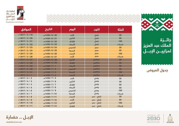 مهرجان الإبل A Twitter جدول العروض في جائزة الملك عبدالعزيز لمزايين الإبل مهرجان الملك عبدالعزيز للإبل