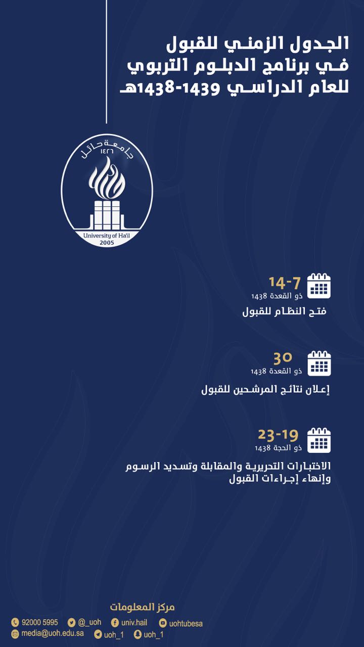 جامعة حائل On Twitter الجدول الزمني لعمليات القبول في برنامج الدبلوم التربوي جامعة حائل