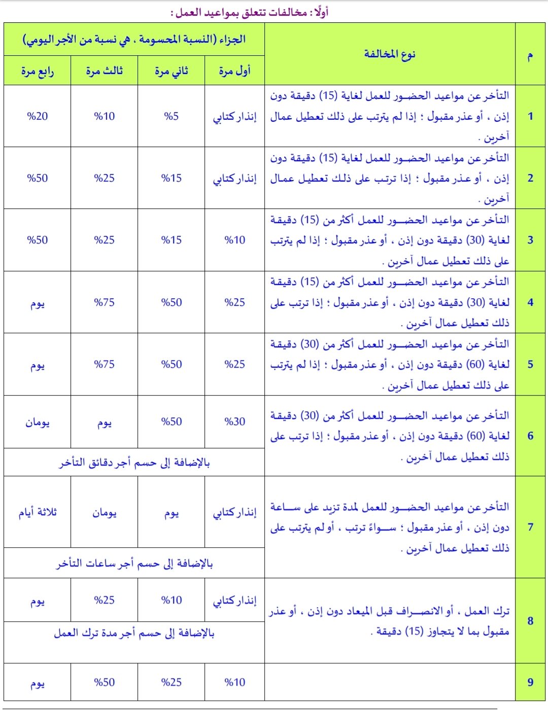 البحوث القانونية عبدالوهاب بن فضل On Twitter جدول المخالفات والجزاءات مخالفات تتعلق بمواعيد العمل مخالفات تتعلق بتنظيم العمل مخالفات تتعلق بسلوك العامل للتحميل Https T Co Oofvuhnaj3 Https T Co Ao4x2xnfun