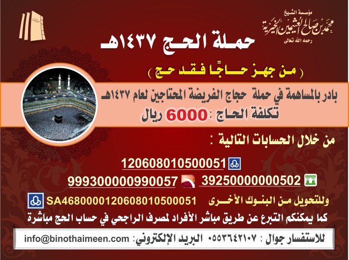 مؤسسة الشيخ ابن عثيمين الخيرية On Twitter الاخوة الاعزاء لازال التسجيل مستمرا في حملة حج الفريضة للمحتاجين على الرابط التالي Https T Co Cg86twpoat وللإجابة على أي استفسار بإمكانكم التواصل عبر ايقونة الدعم